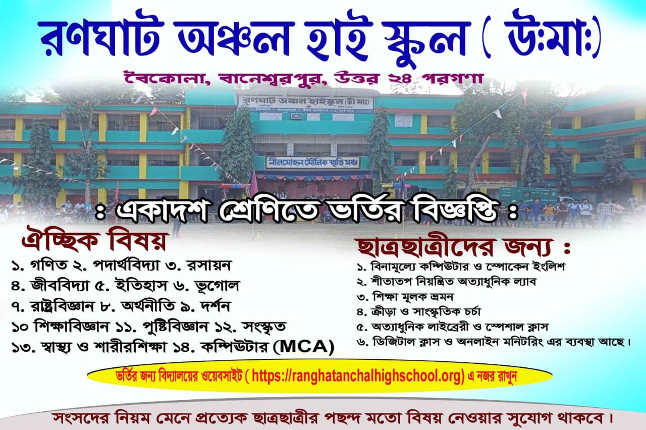 RANGHAT ANCHAL HIGH SCHOOL was established in 1963 and it is managed by the Department of Education. It is located in Rural area. It is located in BAGDAH block of NORTH TWENTY FOUR PARGANA ...
